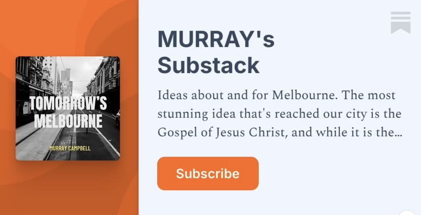 Last month I launched new substack about Melbourne by a Melbournian, helping us to think through the big issues through the lens of the Gospel. Subscribing means you’ll be alerted to all new articles. And it’s free! Come over and join