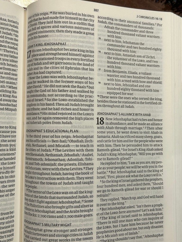 Other than King Solomon, more chapters are dedicated to Jehoshaphat’s reign than any other King in 2 Chronicles. That fact alone caused me to take a good look at his rule and the events that took place under him.