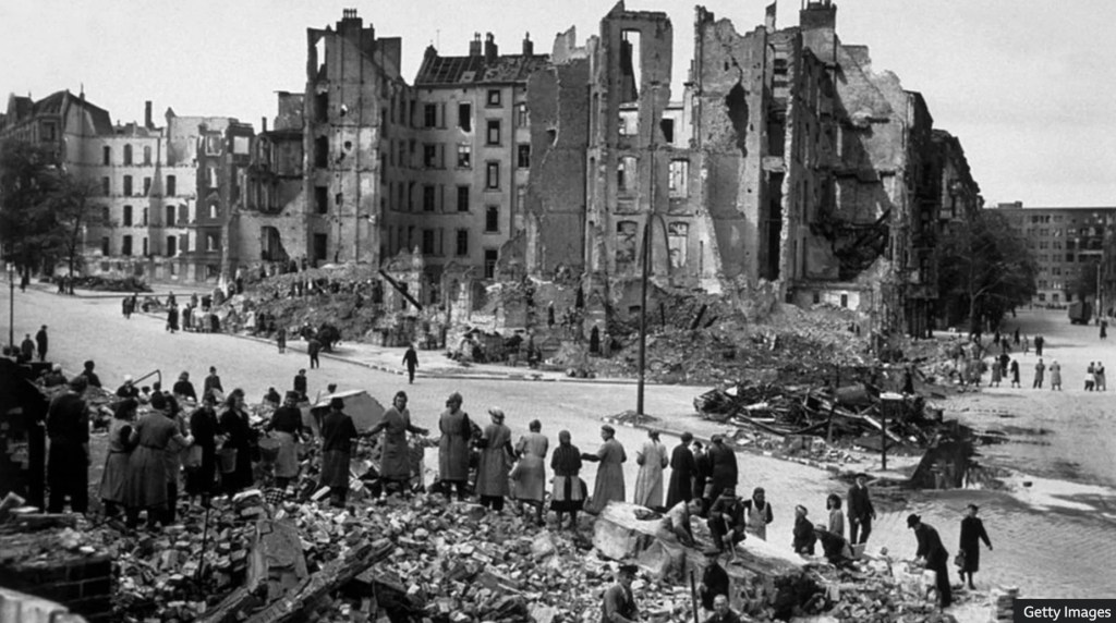 The streets of Berlin were covered in rubble and the blood had not yet time to congealed. In London, Paris, and New York and in towns and villages across Europe millions experienced euphoria as the six of the most violent years in history came to a close. 60 million human beings dead; in fact, no one knows the final count. As the biggest party burst into life, many other civilians and soldiers sighed with exhausted relief. Others were caught in a state of numbness, for how can we cheer when news of the dead continued to be announced. And what of the war in the East? Japan was fighting the most bloody of retreats, island by island, and with the most costly battle yet to be fought. And no one yet knew of the atomic bomb that would dropped, not once but twice on Japanese cities. Even as the champagne flowed at Trafalgar Square and the dust settled on the road to Berlin, there was anxiety and uncertainty as Soviet Forces met their Allies.